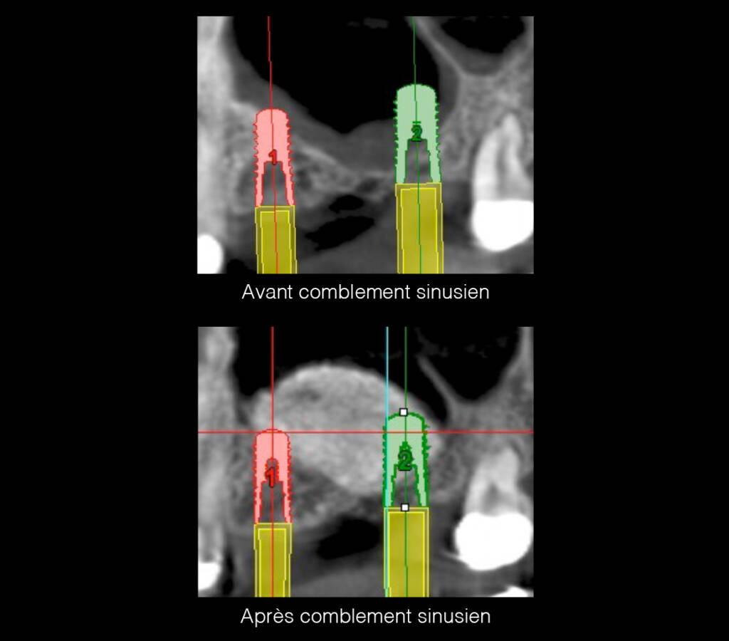 Des matériaux de substitution osseux sont utilisés. Le temps de cicatrisation avant la pose d’un implant est estimé à environ 6 mois.